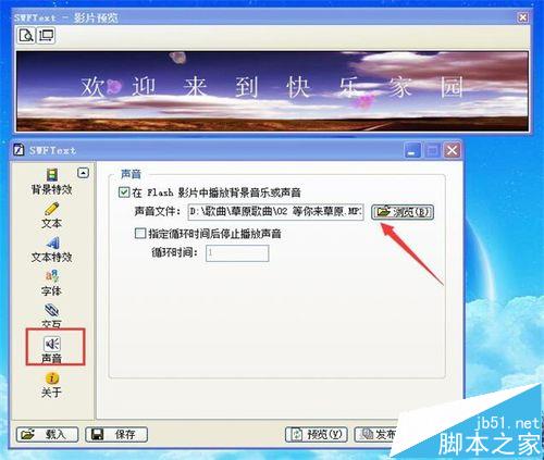 9、聲音:在flash影片中添加背景音樂,音樂為WAV或者MP3格式,盡量簡短。