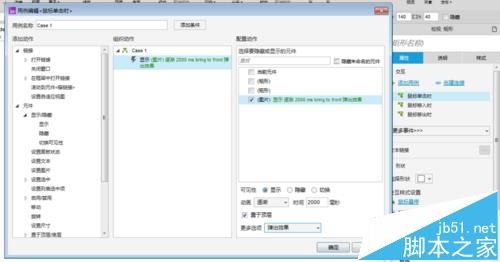 4、選中“顯示”按鈕,添加鼠標單擊時用例,