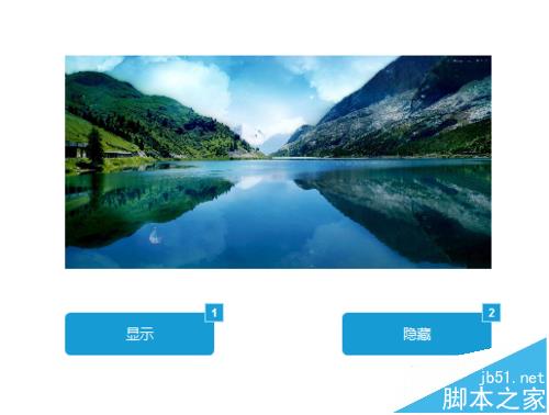 3、在圖片下方添加兩個按鈕,分別為顯示、隱藏,用于控制圖片顯示和隱藏,如下圖所示: