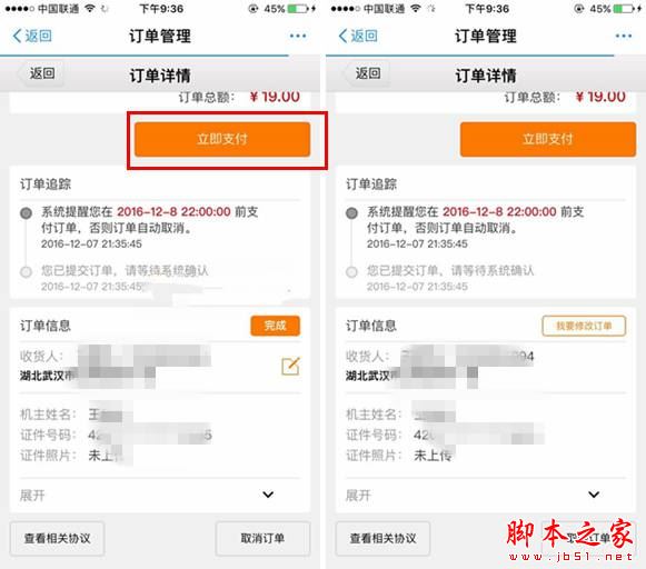 二、進入之后便會發現已經下單的訂單,同時也會發現要求我們立即支付19元,如圖所示。