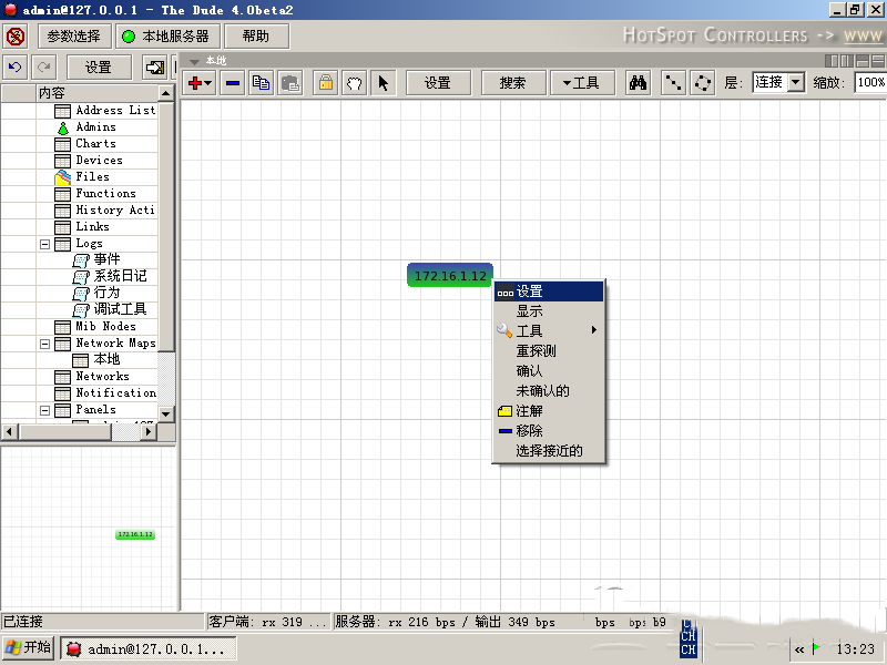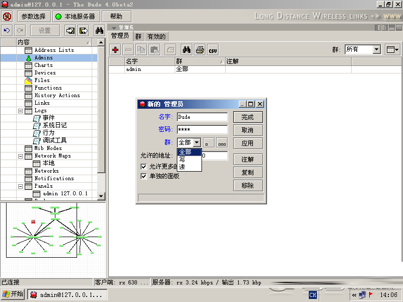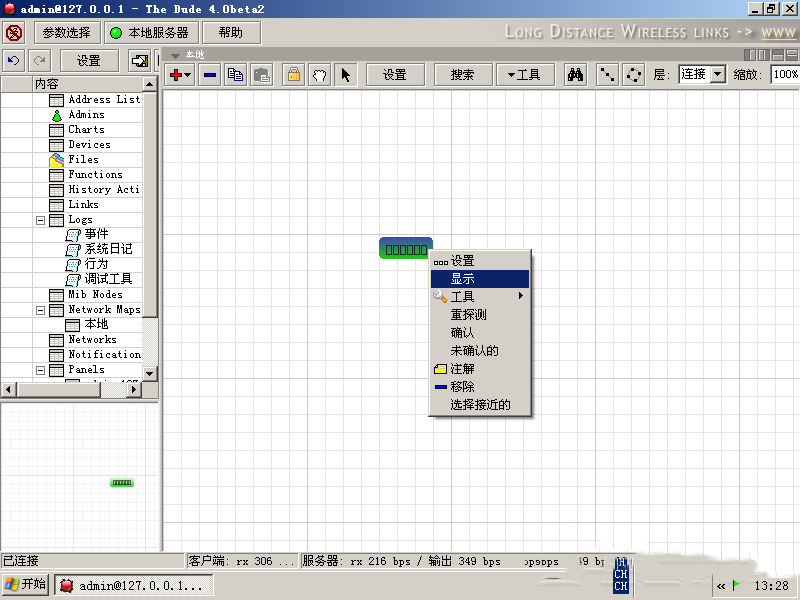 The Dude網絡監控器Net Maps中的操作:1、網絡圖標定義為:右鍵--“添加網絡”;