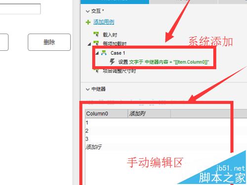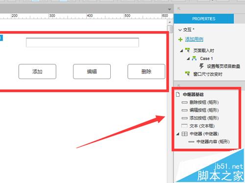 3、布局做好后,先簡單認識一下 中繼器,系統默認為我們添加了三個內容,以及設置了一個交互用例: