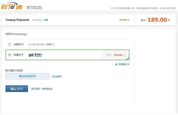 經過體驗,玩家在購物車中選擇財付通結賬時,結算過程不會在Steam內完成,而是在點擊“支付”之后自動跳轉到財付通頁面進行付款,可以選擇財付通余額或者綁定的銀行卡進行快捷支付。