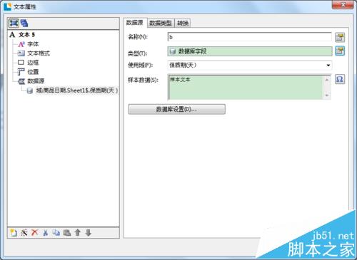 4、以上述同樣的方式,創建代表保質期(天)的單行文本。數據源名稱為“b”。