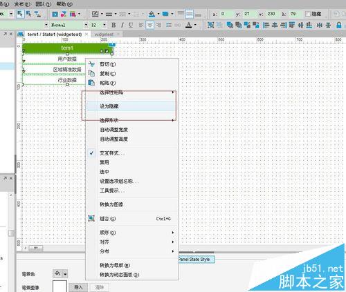 3、每個動態模板添加兩個狀態“state1”和“state2”,其中“state1”狀態為隱藏狀態,“state2”狀態為顯示狀態。以tem1模板為例進行說明。