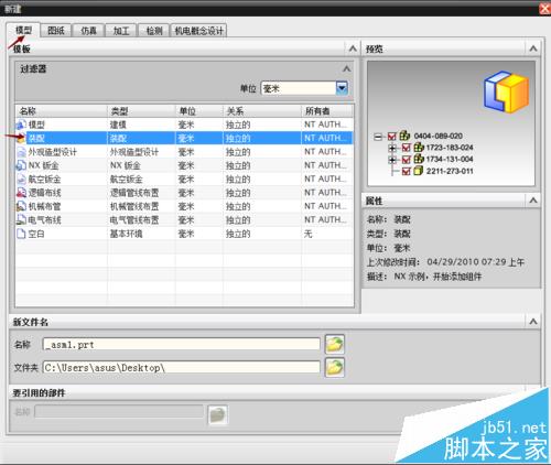 2、運行UG,在運行之后的界面點擊新建,在模型對話框里點擊裝配,然后可以點擊確定進行裝配模塊