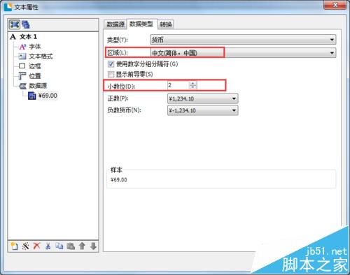 3、在此,您可以根據實際要求設置“區域”貨幣格式,及“小數位”等。