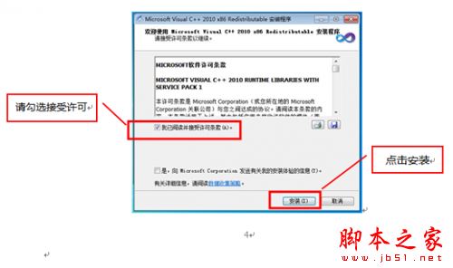 當軟件安裝過程中彈出提示需要安裝C++安裝程序時,請先勾選接受許可,然后點擊安裝,安裝完畢后,點擊完成,繼續軟件的安裝。