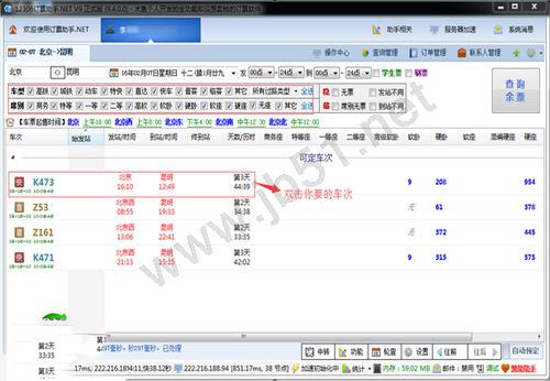 然后可以開(kāi)始查詢(xún)車(chē)票了,輸入發(fā)站和到站名稱(chēng),還可以輸入車(chē)型以及席別等,然后會(huì)顯示剩余的座位數(shù),硬臥,軟臥,硬座等,“--”代表無(wú)此席別(也有可能是有票沒(méi)放出來(lái)).