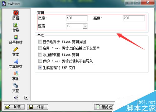 2、按照需要調好寬度、高度和速度,右下角有預覽按鈕可以預覽效果。