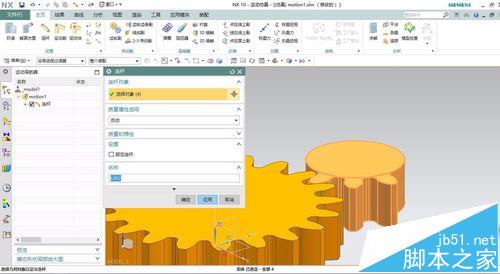 4、依次點擊文件--打開--運動仿真或者直接在(應用模塊--運動),右鍵motion1新建一個仿真,點擊連桿,將齒輪定義為2個連桿,注意由于小齒輪并沒有求和,所以也要將4部分選擇同一個連桿。
