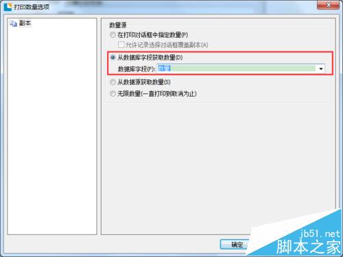 3、在彈出的對話框右側,勾選“從數據庫字段獲取數量”,數據庫字段選擇代表數量的字段。