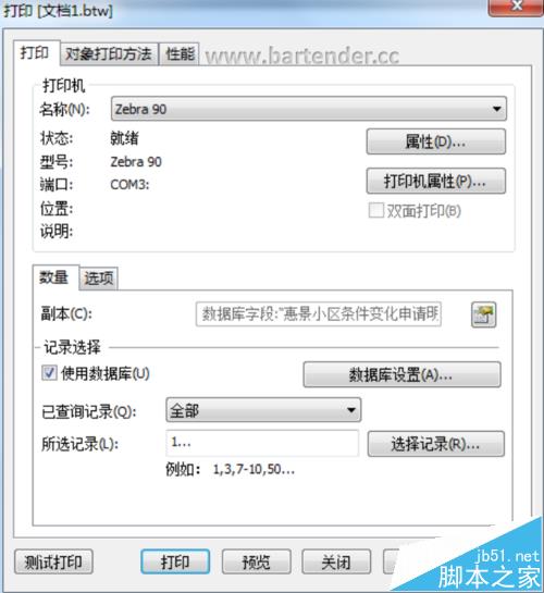 1、首先將要打印標簽副本的數量在數據庫中對應,然后在BarTender中連接此數據庫。