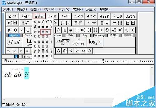 MathType怎么在字母正上方添加黑點?