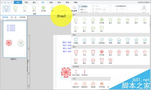 2、選擇相應的進入動畫、給動畫做個特效以及退出動畫