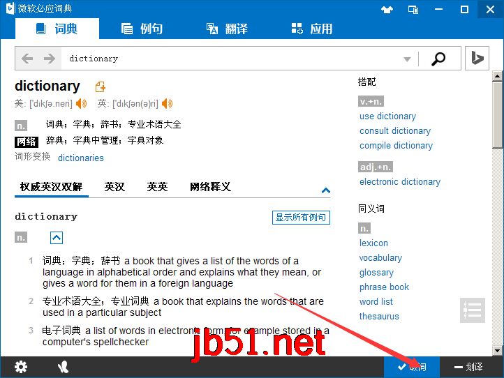 同樣我們也可以把該單詞添加到必應(yīng)詞典,方便以后使用