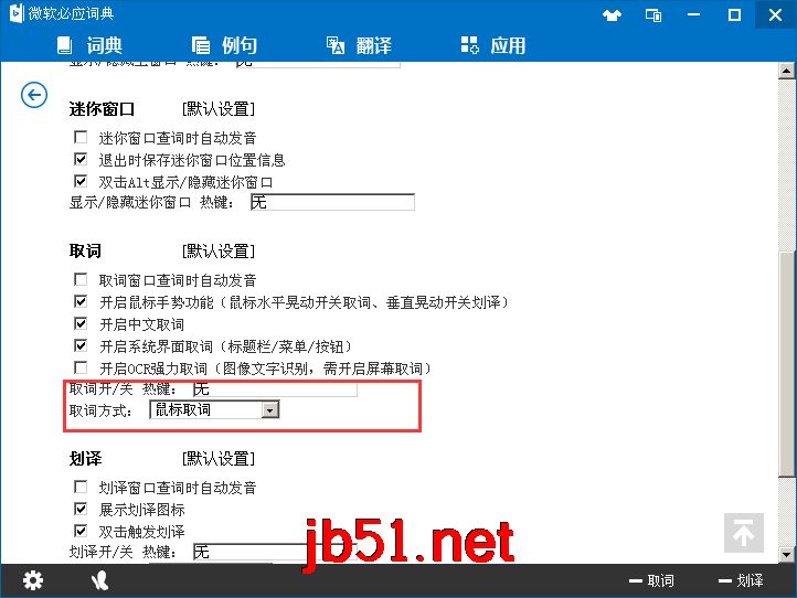 必應(yīng)詞典初始設(shè)置的取詞的快捷鍵是“鼠標(biāo)取詞”,還可以通過必應(yīng)詞典設(shè)置里面的取詞劃詞中設(shè)置自己習(xí)慣的屏幕取詞快捷鍵;