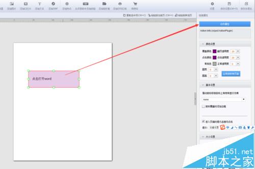 2、點擊“添加鏈接”,在需要彈出word的頁面畫鏈接框,然后打開“動作屬性”