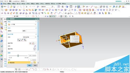 4、因為封閉圖形看不出里面的特征,點擊視圖/截面/編輯截面,分別選擇XY、XZ、YZ平面,查看抽殼后的特征為中間空,周邊封閉的腔體。