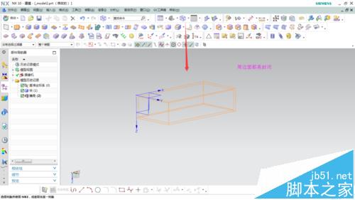 3、退出后重新選擇對所有面抽殼,選擇長方體,生成抽殼特征,所有面均是封閉,可以調為二維線框查看。