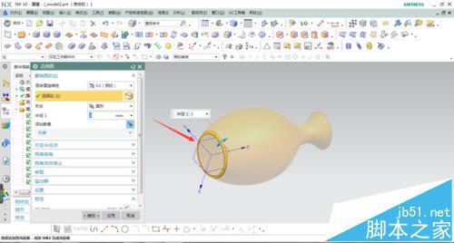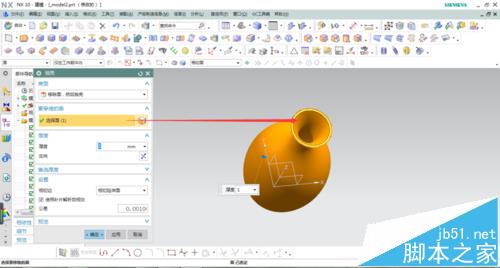 3、選擇抽殼命令,選取瓶口為抽取面,將花瓶抽空,如圖