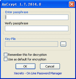 AxCrypt 除了可以對文件使用最普通的密碼進行加密以外,還可以設置一個密鑰文件。以后再使用該加密文件的時候不僅需要密碼,而且還需要該密鑰文件。當然,如果你使用該方式加密的話,一定注意要保管好你的密鑰文件,否則如果丟失,被加密的文件就永遠無法打開了。