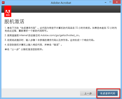 點擊“脫機激活”,并接著點擊“生成請求代碼”。