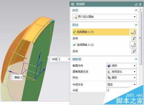 11、創(chuàng)建鏡像體。單擊【插入】|【關(guān)聯(lián)復制】|【抽取幾何體】命令,在【類型】下拉列表中選擇【鏡像體】選項,在工作區(qū)中選擇上步驟創(chuàng)建的曲面為目標曲面,選擇YZ平面為鏡像平面,結(jié)果如下圖所示。創(chuàng)建面倒圓2。 單擊【特征】|【面倒圓】命令,選擇鼠標底面曲面的邊緣線,結(jié)果如下圖所示。
