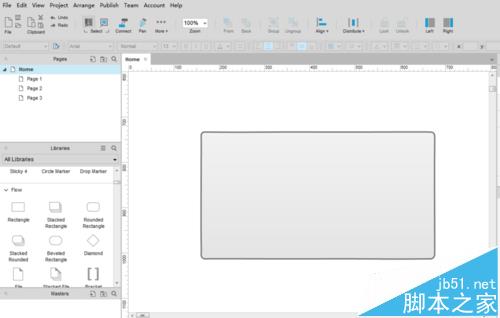 1、打開Axure RP 8軟件,找到“Rounded Rectangle”,拖出一個到Home頁面,如下圖所示: