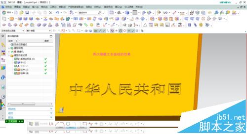 3、這幾個拉伸出來效果如圖正常顯示。再次點擊插入/曲線/文本,另外輸入幾個文字,選用和前面文字相同的字體和設置。