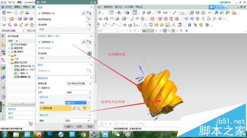 注意事項:注意在掃掠中選取不同的定位軸會生成不同的形狀。