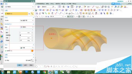 3、于是還是做螺旋線來當引導線,如圖插入螺旋線,螺距選擇是長度的兩倍,這個根據螺旋槽的數量來定。
