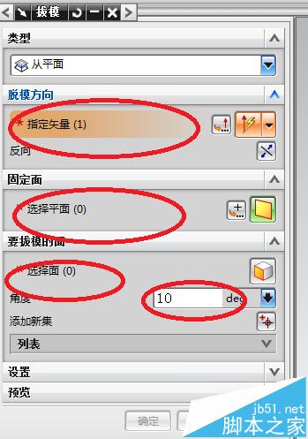 5、彈出拔模命令對話框,你需要在指定位置輸入需要的信息