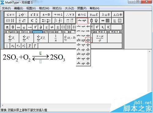 在編輯化學反應方程式的時候會涉及到一些格式與符號問題,最明顯的就是化學反應條件這個符號,一般是等號或者可逆符號。下面介紹MathType可逆符號的編輯方法。