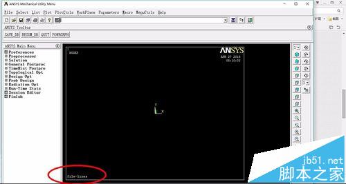 3、依次點擊Utility Menu>File>Change Title,彈出對話框,我們可以輸入example,點擊OK即可完成定義分析標題。 (/TITLE 命令)(右擊鼠標,選擇replot,則會刷新,會看到左下角出現file-lines)