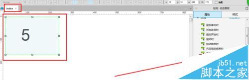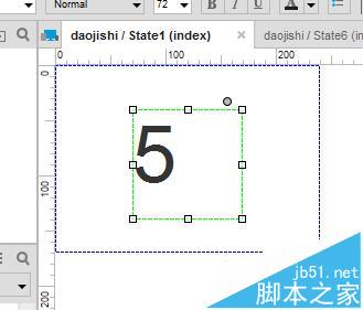 5、在state1中動態面板范圍內拖入文本標簽并輸入5,然后修改字體大小至合理