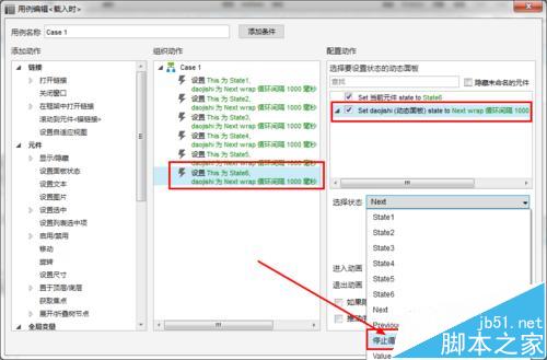 17、將最后一個當前元件設置為state6后,將其動態面板狀態選擇為停止,點擊確定。就可以在主頁頁面發布預覽效果啦~