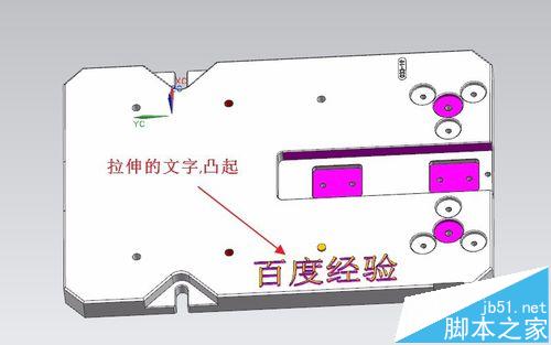 5、文字輸入完成后,我們直接點拉伸,可以使文字突出,這就相當于多出材料,如圖所示;