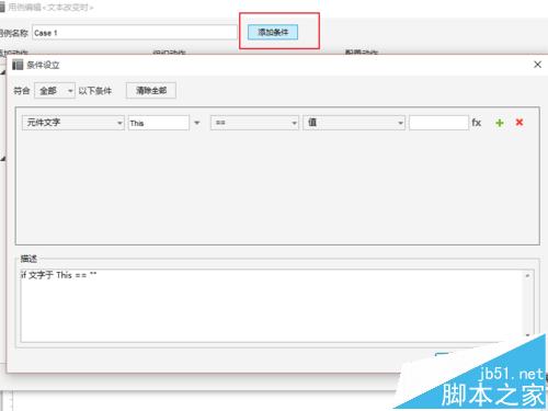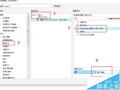 7、再次添加一個(gè)case,并設(shè)置文本為:輸入值有誤;
