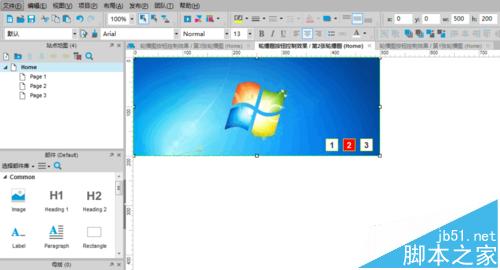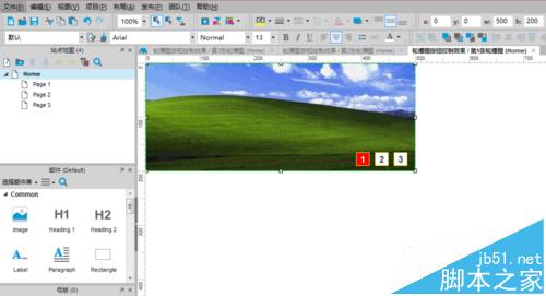 依次在“第2、3張輪播圖”標簽頁編輯中采用相同的操作,依次拖入“圖片”元件并完成相同參數設置,依次添加完第2張輪播圖,第3張輪播圖。教程中采用的輪播圖分別為:windows XP、Windows 7、Windows8的經典桌面圖片;如處圖所示: