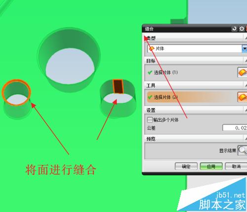 5、我們將有問題部位進行修補,然后將修補的片體進行縫補,讓產品形成實體;