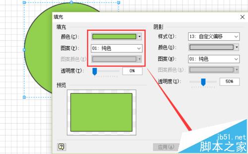 4、鼠標右鍵單擊圓形,選擇“格式”-“填充”選項,在彈出對話框中編輯圓形的填充屬性,如圖所示。
