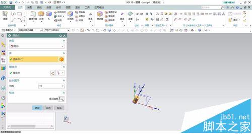 6、然后類型選擇為均勻,選擇體選擇為拉伸實體,點則選擇原點,均與指的是放大多少倍。比如我們是放大10倍則輸入10,如下圖所示。