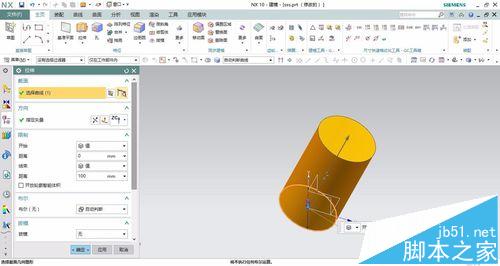 4、在XY平面中,我們畫一個直徑任意大小的圓形形狀。完成并退出草圖。選取拉伸命令,接著拉伸該草圖曲線,拉伸高度可設為100mm。