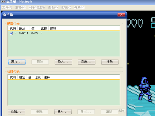 可以導出搜索到的金手指代碼,在下次游戲時導入。
