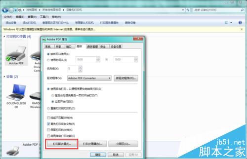 2、選擇這個(gè)虛擬打印機(jī),這是Adobe PDF虛擬打印機(jī),其他打印機(jī)可參考這個(gè)設(shè)置進(jìn)行配置