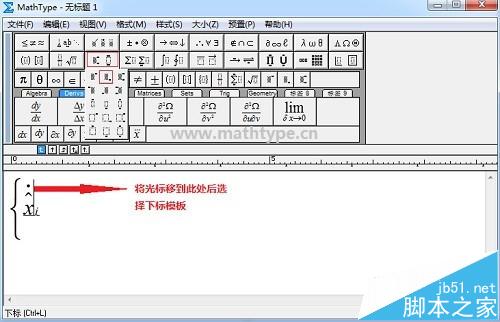 1、打開MathType軟件,在括號模板中選擇左邊大括號,在上標與下標模板中選擇中上標模板。