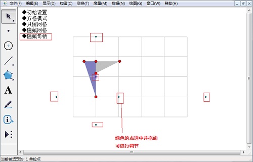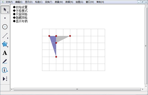 4.使用點工具,在網格上構造點,就能夠精確地繪制在格點上了(下圖中的三角形是選中三個點后構造三角形內部形成的)。
