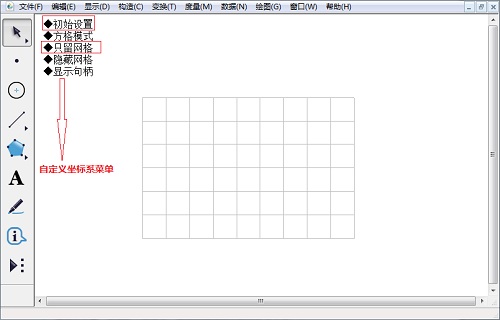 3.點擊自定義坐標系菜單的“初始設置”和“只留網格”。