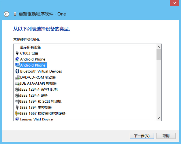 到了下面的界面,選擇Android Phone(我的電腦上有兩個(gè),一個(gè)不能用,所以不行的話是另外一個(gè))